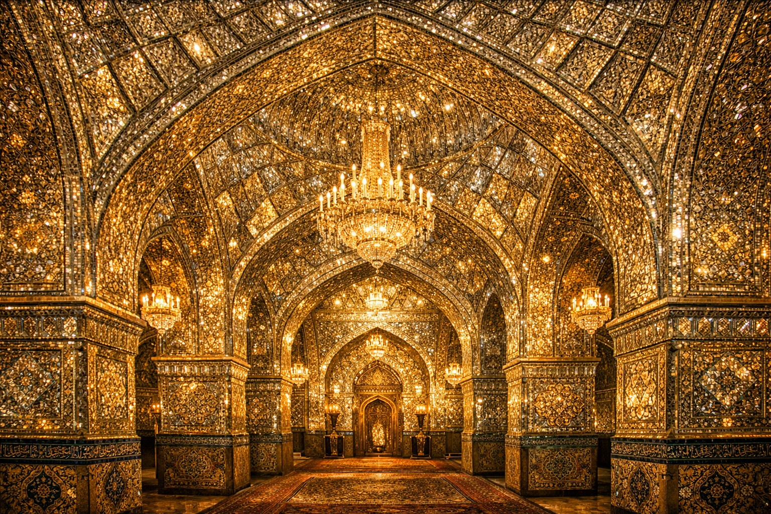 Una de las muestras más impresionantes de espejado en el mundo. La cúpula, los minaretes y las paredes están llenos de pequeños y grandes fragmentos de espejo. La luz se refleja tanto que deslumbra.